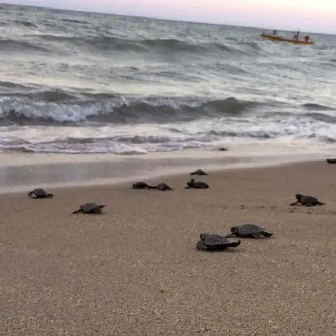 Without the usual crowds of locals and tourists, government workers in Paulista, Brazil, witnessed the beautiful moment when around 100 hawksbill sea turtles hatched peacefully, and then making their way down to the shore and into the ocean.