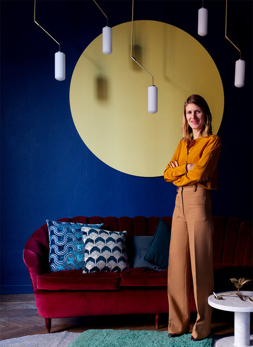 Deep in the heart of Brera, Milan’s premier design district, Sophie Wannenes has turned her period apartment into a livable, shoppable emporium of beautiful interior pieces hand-selected from a wide range of eras, geographies and aesthetics. The interior designer, antique dealer and decorator draws from her own heritage in the business as well as a plethora of influences to create a stunningly curated space you’ll never want to leave. Nestled in the aubergine tinged kitchen is our Basalt Ceiling Light, reflected in a wall of vintage mirrors and delicately poised above a pair of intricate dining chairs by Pierluigi Colli and Kirkby Design. Here, Sophie lets us into her world, if only for a brief moment.