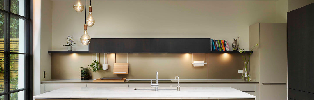 "Sculptural glass pendants or interesting dropped bulbs are a great solution. The Voronoi has a lightness and simplicity to it whilst being really interesting - it is a feature. We are thrilled how it has turned out in this kitchen extension." - Clifton Interiors
