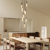An expression of nature’s mathematical beauty, the Basalt Nine Pendant combines nine irregular hexagonal pendants with nine translucent mouth-blown borosilicate glass bulbs to create a dramatic statement light that will transform any large interior space.