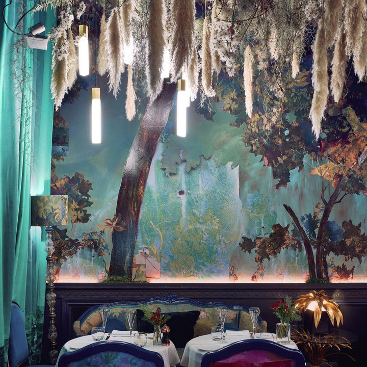 Evoking nature’s magnitude, the Basalt Triple Pendant combines three irregular hexagonal pendants with three translucent mouth-blown borosilicate glass bulbs, creating a truly unique ceiling light fixture.
