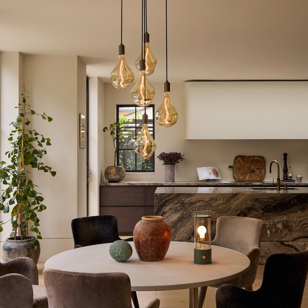 Purchase the fixture and mix and match with other E27 bulbs to suit your individual style or interior scheme. Recommended bulbs include Oval II (pictured), Sphere V and Voronoi III.