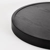 Housed in a circular steel canopy with a powder-coated white or black finish, it features a broad wooden inner disc display in Oak, Walnut or Black Ash colour finishes.