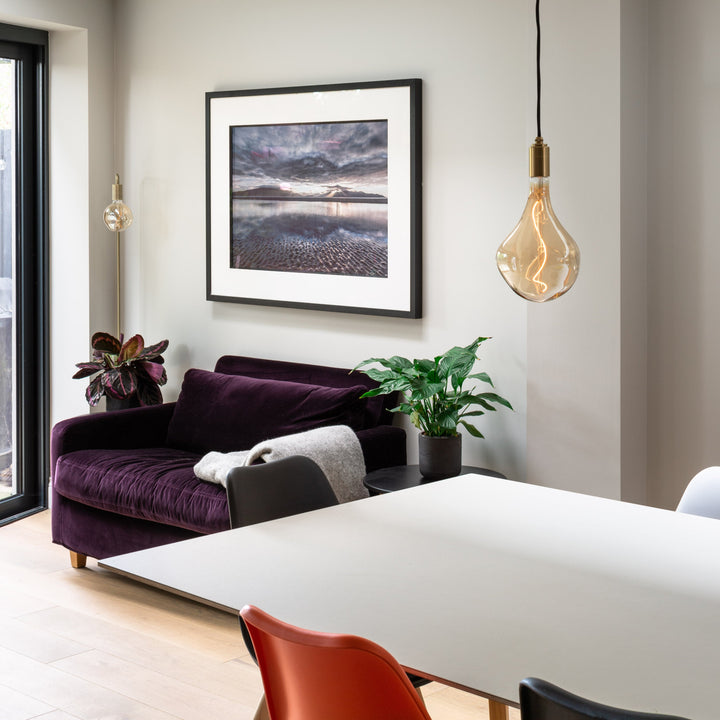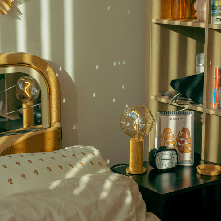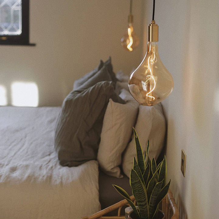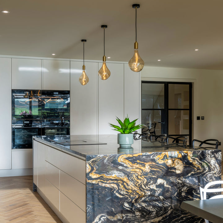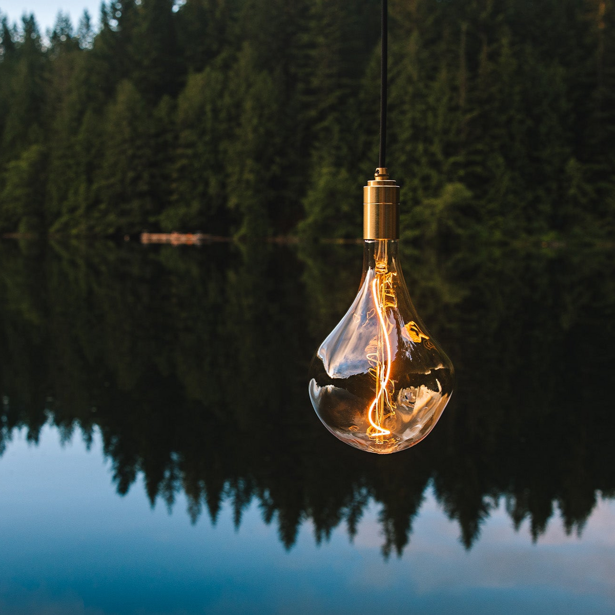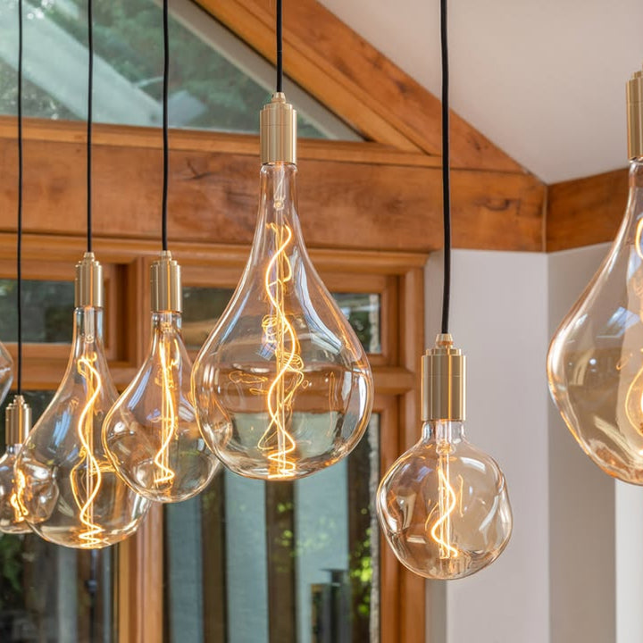 Voronoi bulbs are mouth-blown and shaped in a solid steel mould. The custom LED filament is hand assembled around the glass core, and the iron tint finish on the borosilicate glass helps create a soft and layered refraction of light.