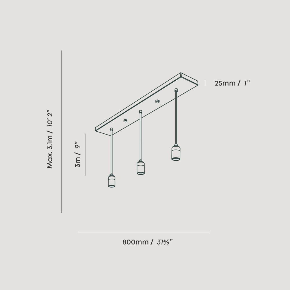 Complete with three signature Tala pendants, the sleek and sturdy linear canopy is designed to display a trio of decorative bulbs in a uniform row.