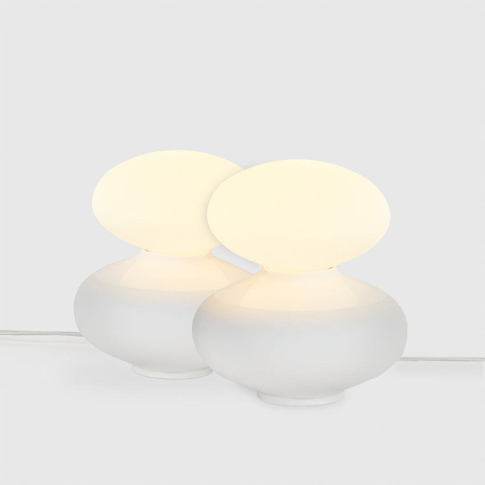 The smooth curvatures and matte porcelain finish of the Oval bulb, the Reflection Oval Table Lamp comes complete with a beautiful high-gloss glaze in the top third of the base to accentuate the bulb’s glow.