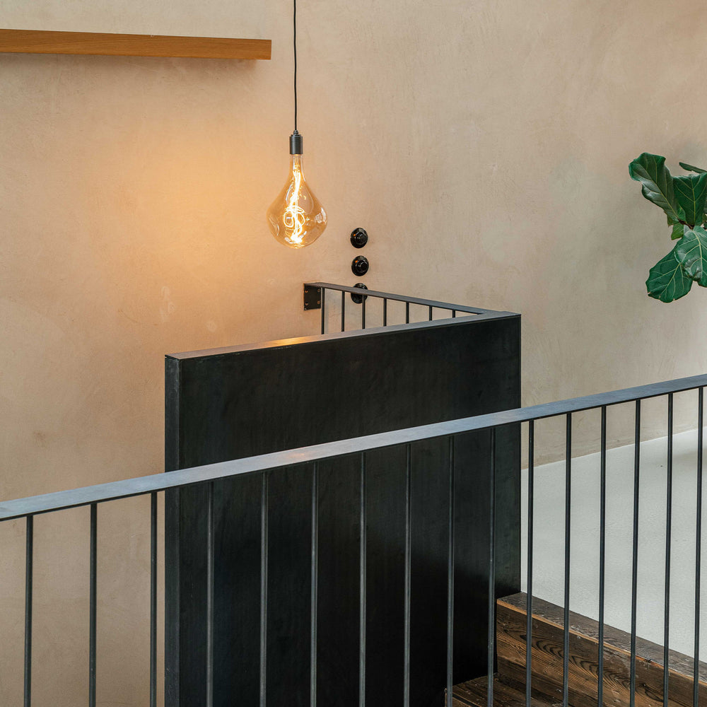 Voronoi bulbs are mouth-blown and shaped in a solid steel mould. The custom LED filament is hand assembled around the glass core, and the iron tint finish on the borosilicate glass helps create a soft and layered refraction of light.